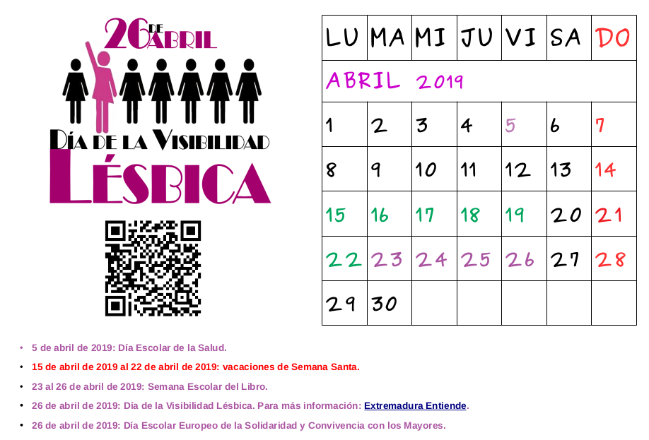 26 De Abril 2019 Calendario