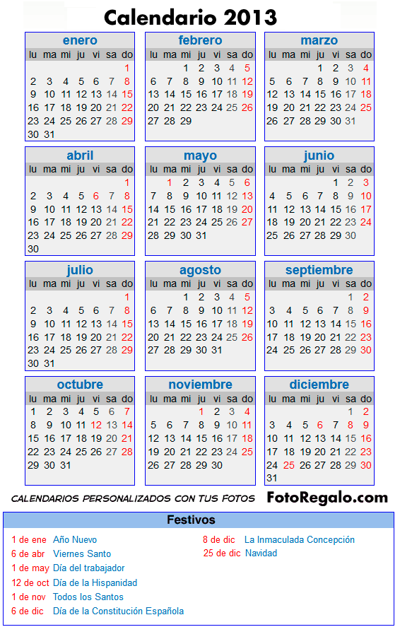 Calendario Ano 2013 Espana