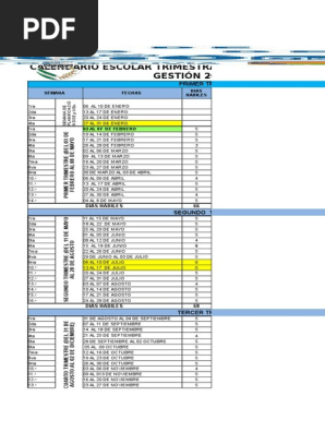 Calendario Escolar 2020 Bolivia Pdf