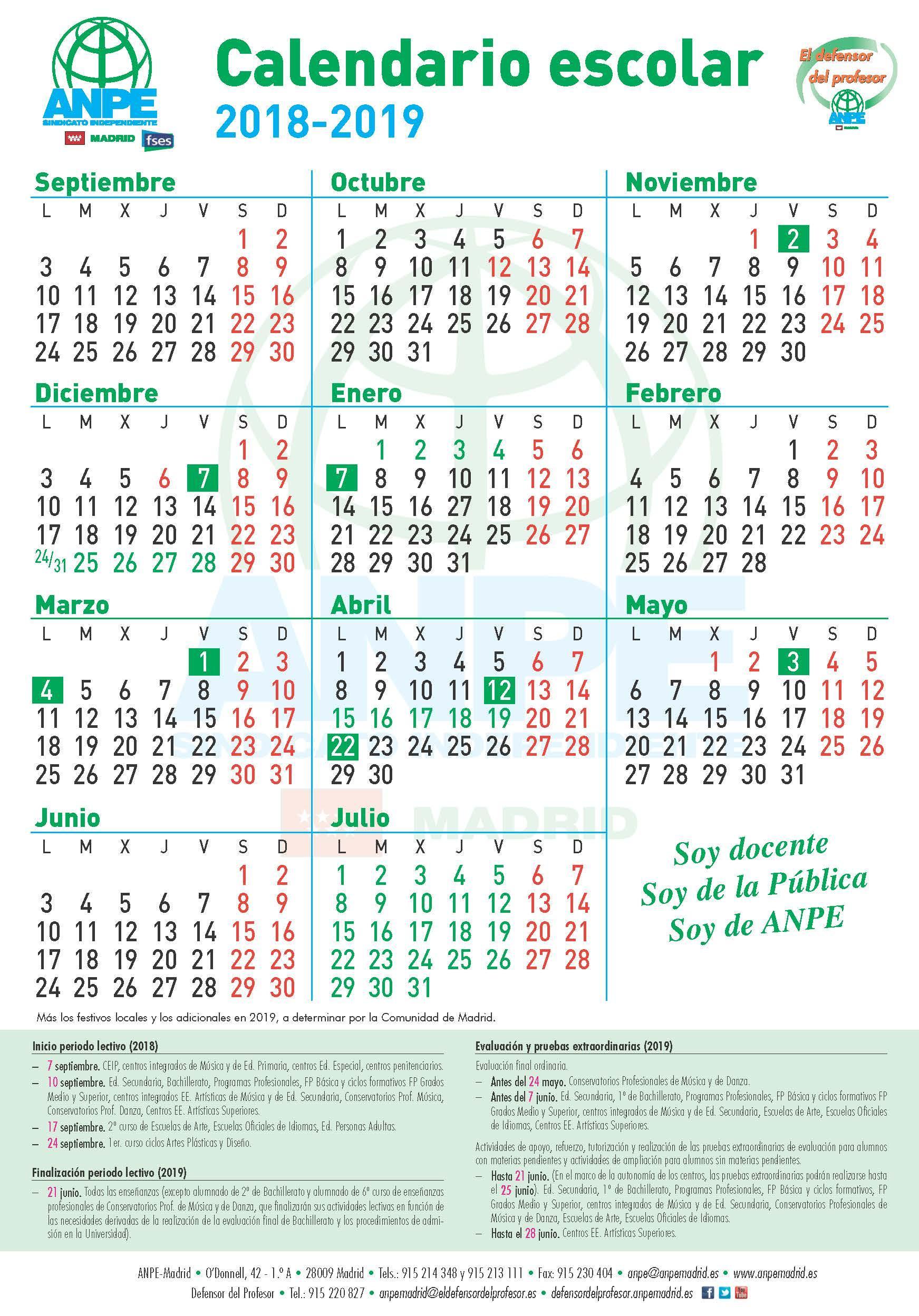 Calendario Escolar Madrid 2019 A 2020 Pdf