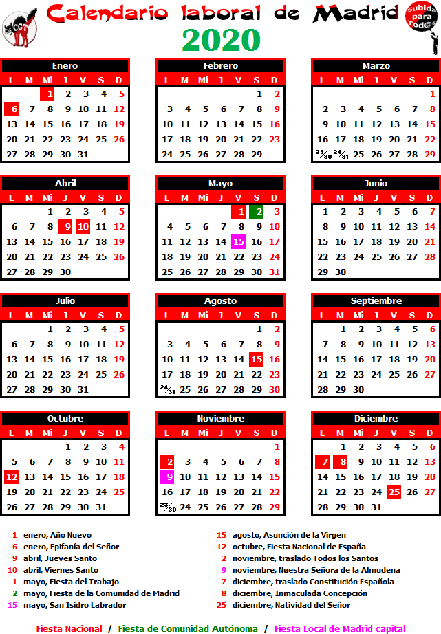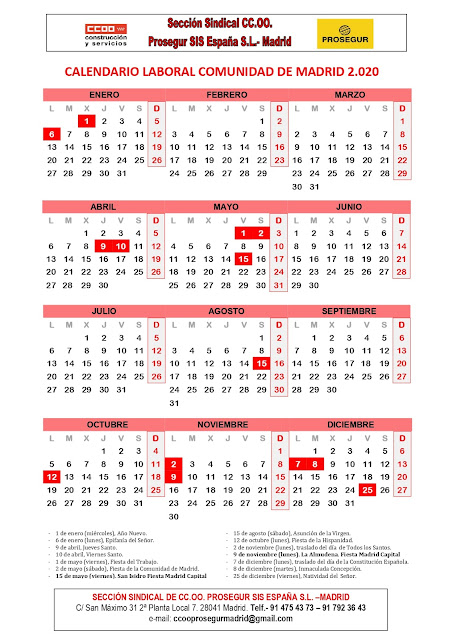 Calendario Laboral 2020 Madrid Pdf Ccoo