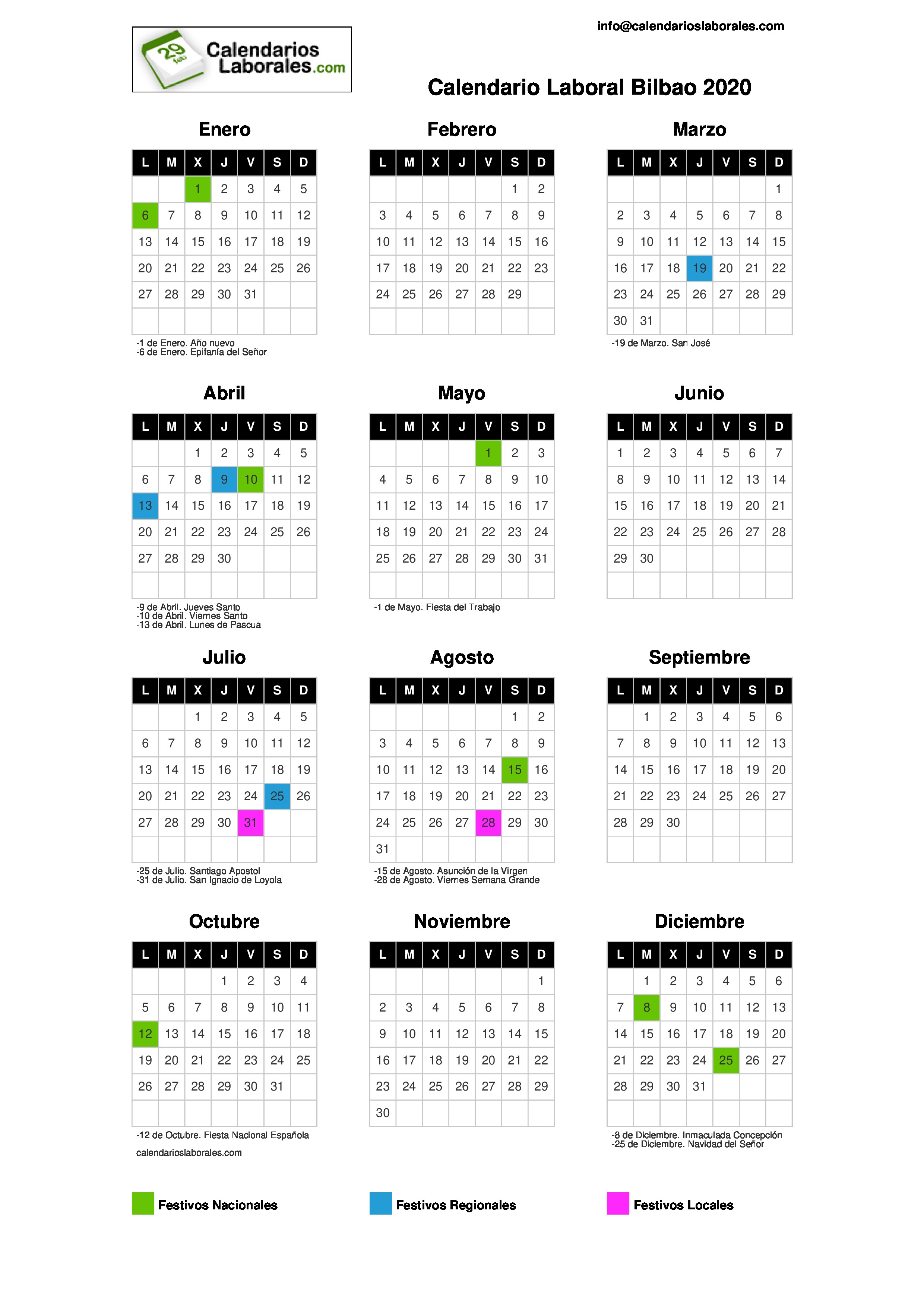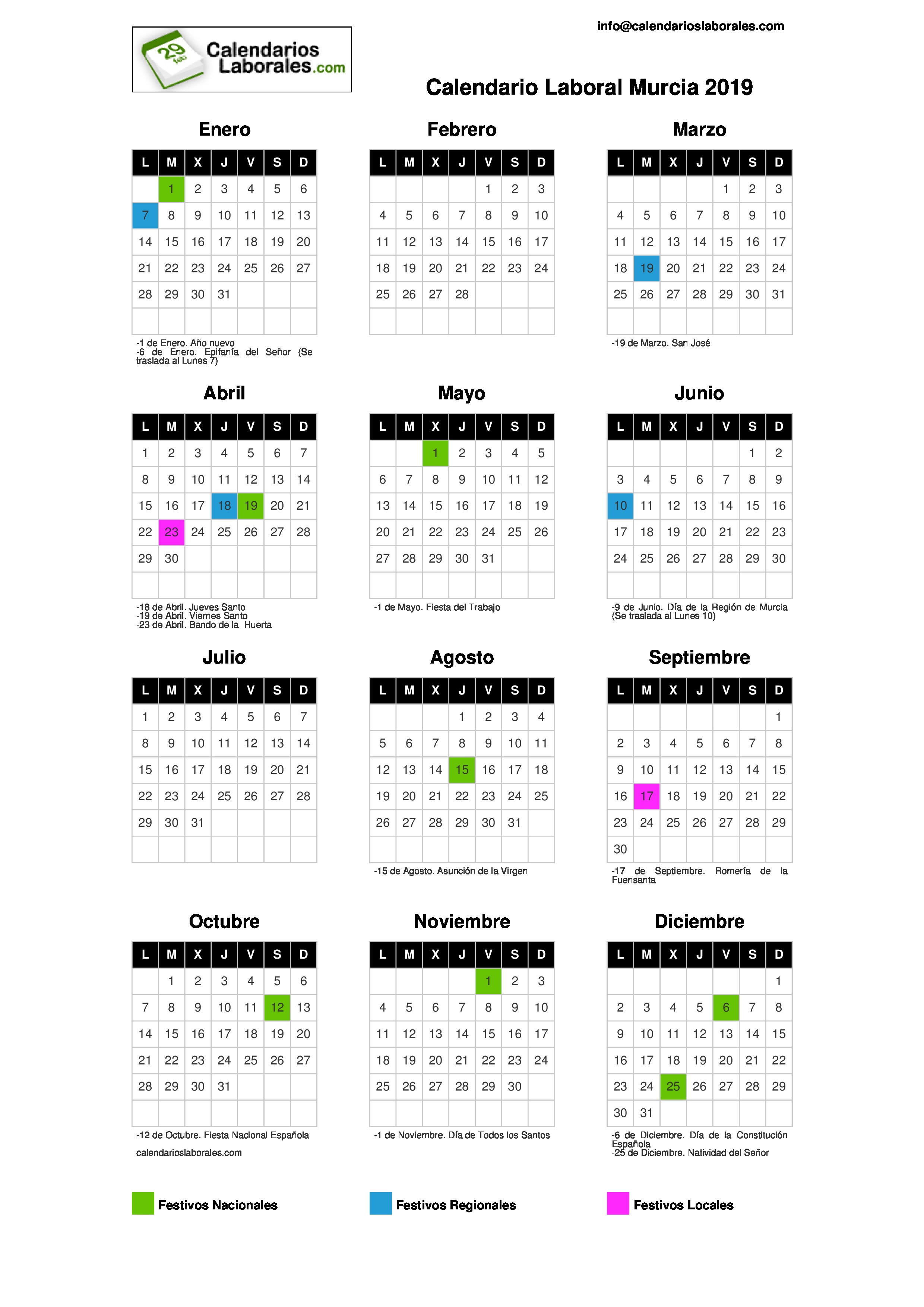 Calendario Laboral 2020 Murcia Excel