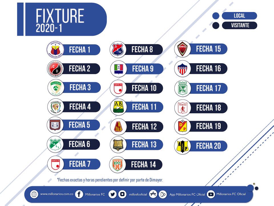 Calendario Liga Aguila 2020 Millonarios