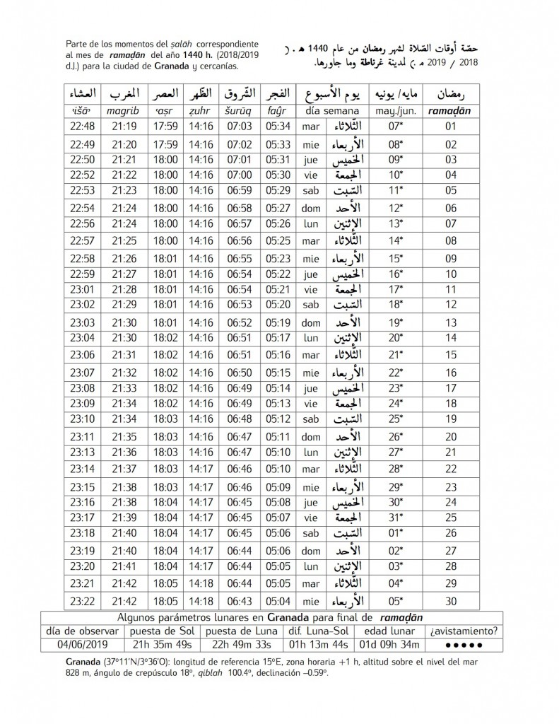 Calendario Ramadan 2019 Espana