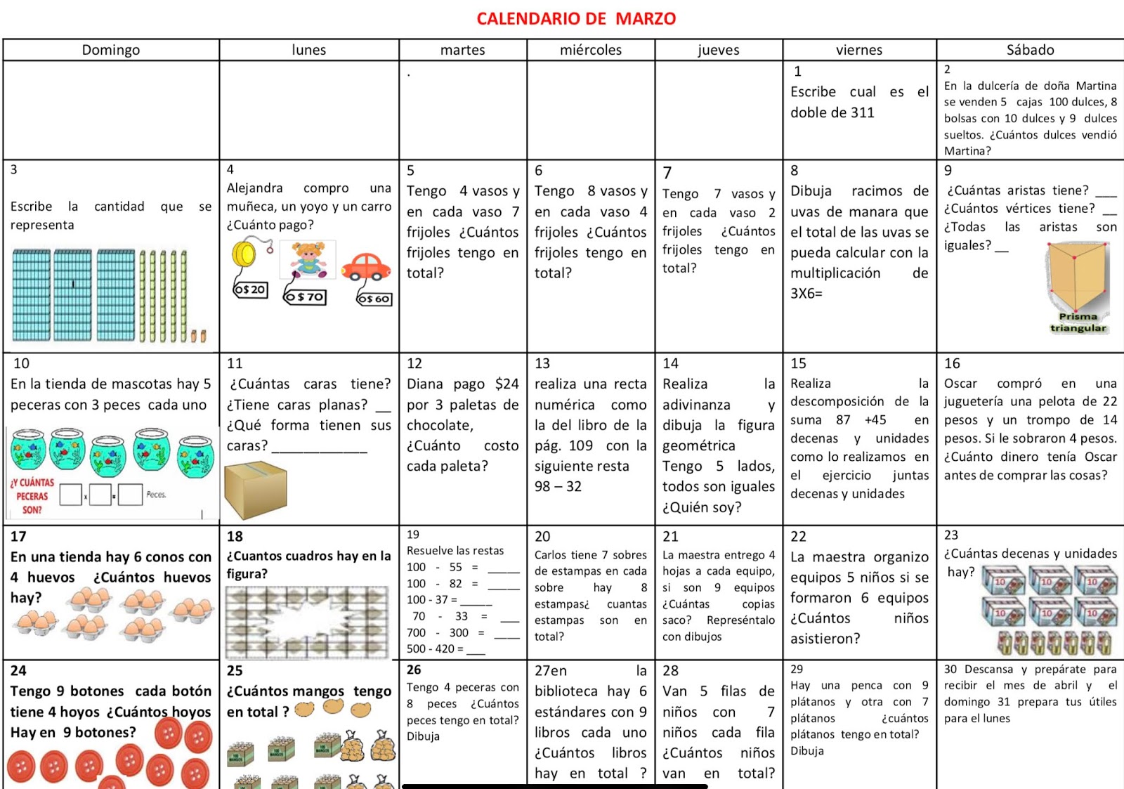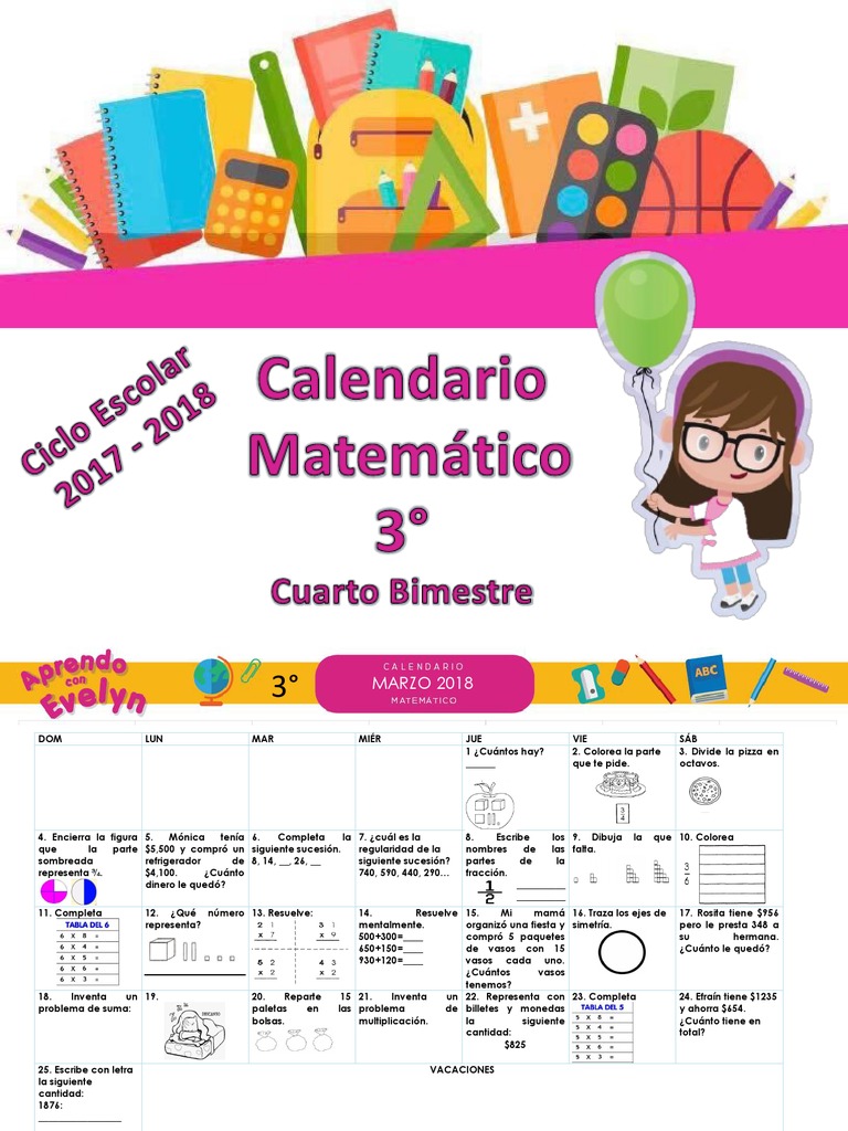 Calendario Matematico Marzo 2018 Nivel 3 29 Brainly Lat